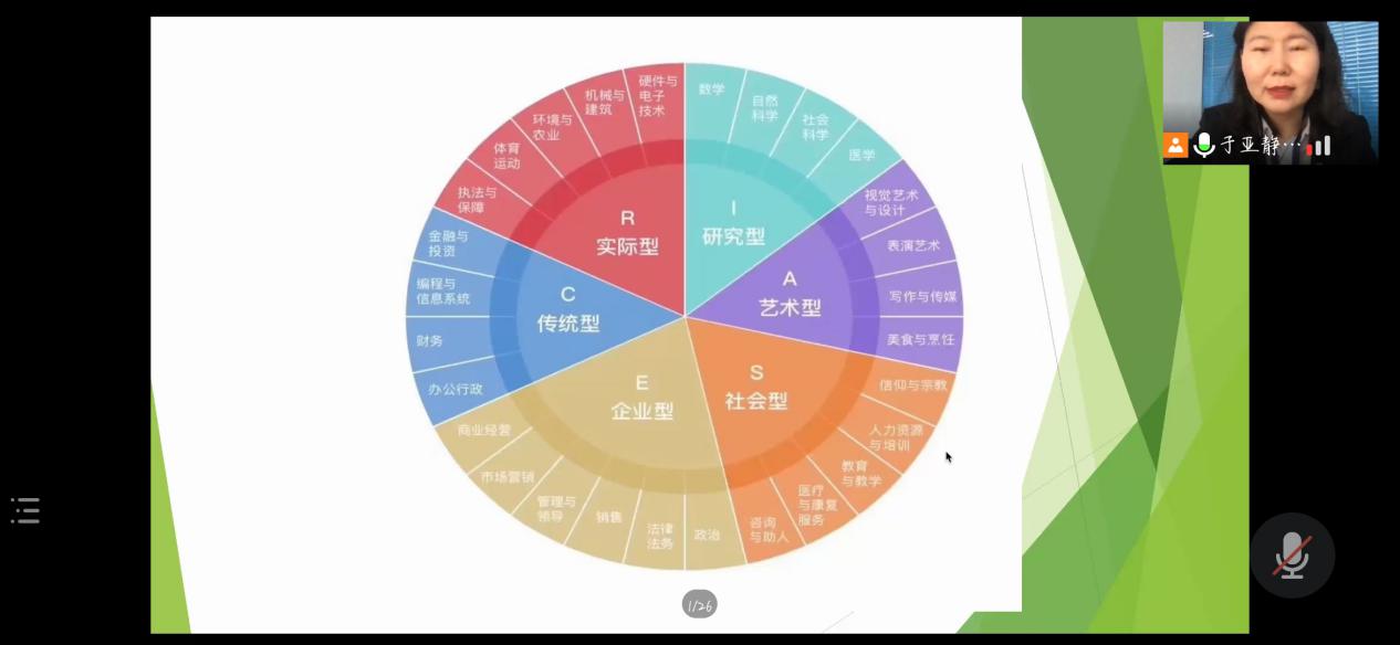 在讲座开始时,于亚静员工让同学们做了一个霍兰德职业兴趣测试,并讲解了六种职业类型,以此给同学们解释职业兴趣爱好的选择。在完成测试之后,于亚静员工以两位同学的测试结果为例,通过兴趣,能力与价值三方面为同学们讲解了如何找到最适合自己的完美工作。最后,于亚静员工为同学们进行答疑解惑。