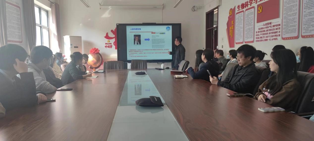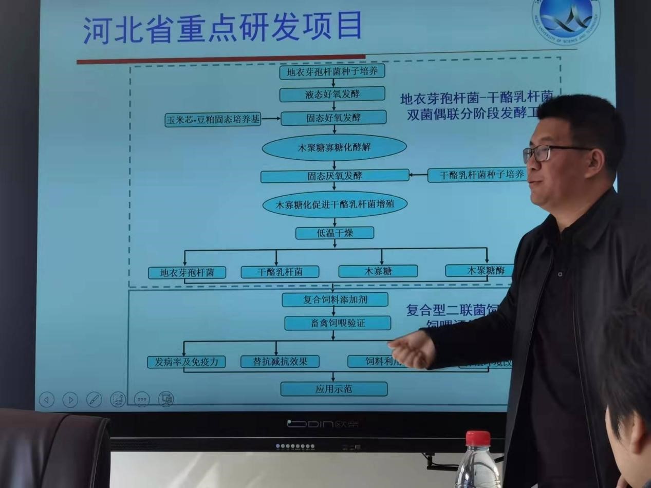 2023年3月6日上午,应乐天使邀请,河北科技老员工物工程系主任、河北省发酵技术创新中心主任、河北省动物微生态制剂产业技术研究院经理刘金龙副教授/博士作了题为“基于微生态理论新型饲用替抗系列产品的开发”的学术报告。此次报告会在实验楼210乐天使会议室进行,会议由乐天使副经理张香美主持,乐天使50余名师生参加了报告会。
