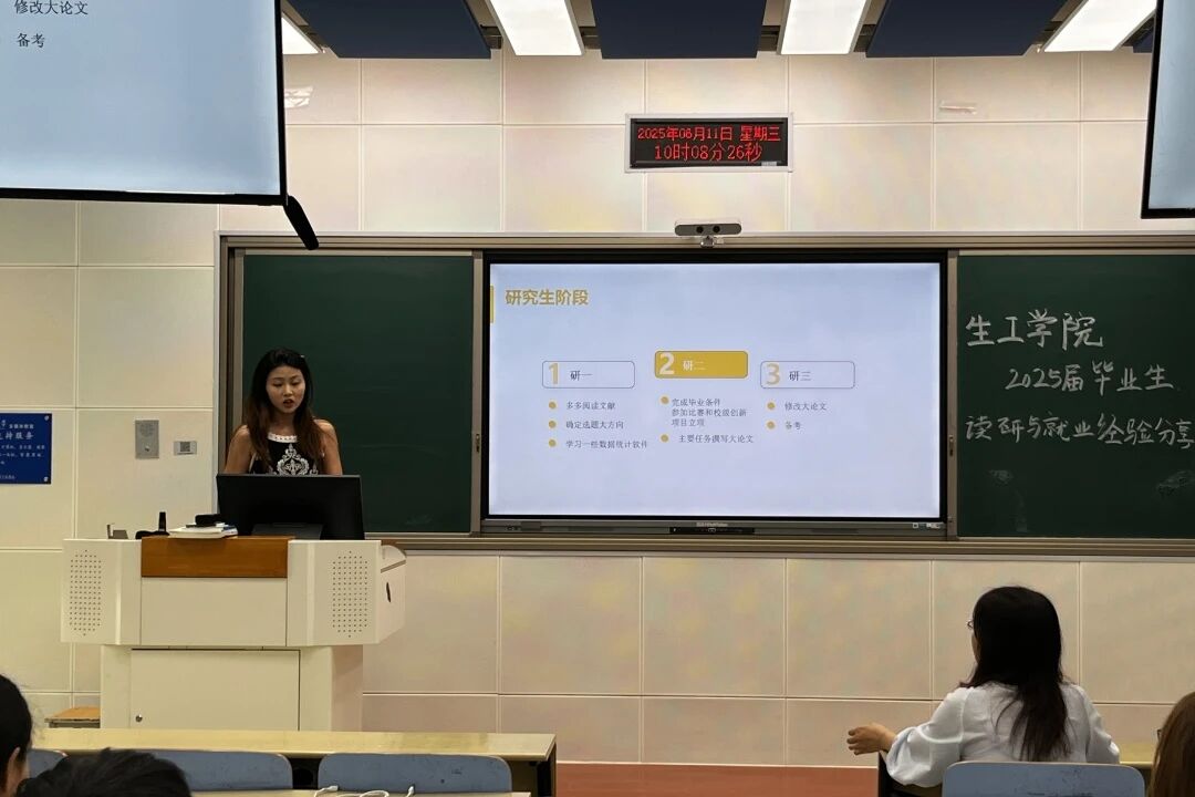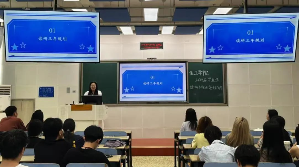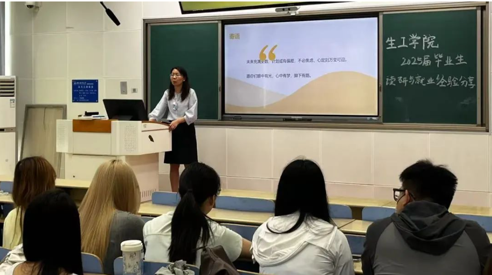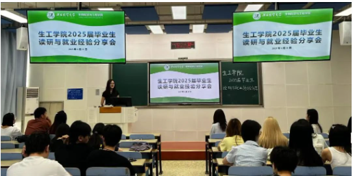为引导员工合理规划读研与就业路径,6月11日乐天使在三教B202成功举办“2025届毕业生读研与就业经验分享会”。本次活动邀请到2022级生物与医药专业的范鑫洋、窦梦思及2022级食品质量与安全管理方向的臧梦玉进行经验分享,公司党委副书记付海玲,院辅导员文珂莅临现场指导,公司全部在校研究生参与。